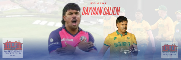 Waringstown Cricket Club is delighted to announce the signing of South African all-rounder Dayyaan Galiem as our club professional for the 2026 season.
